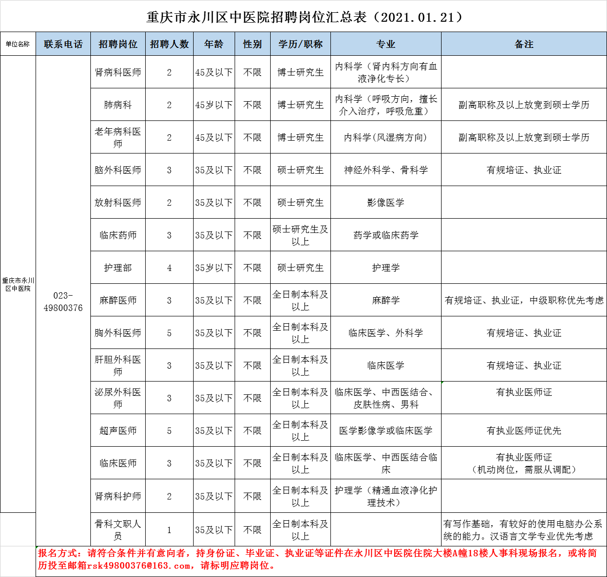 永川中醫院招聘崗位需求,看看有你合适的崗位嗎?