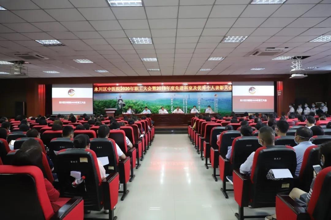 5月29日下午,金年会2020年職工大會暨2019年度先進科室及優秀個人表彰大會在醫院住院部B幢大會議室召開。永川區衛生健康委員會黨委書記、主任鄒光明,金年会院長毛得宏,黨委書記成南峰等全體院領導班子成員出席了本次會議。各科室主任、副主任,護士長,各職能科室負責人、受表彰先進代表共200餘人參加會議。會議由副院長肖順瓊主持。